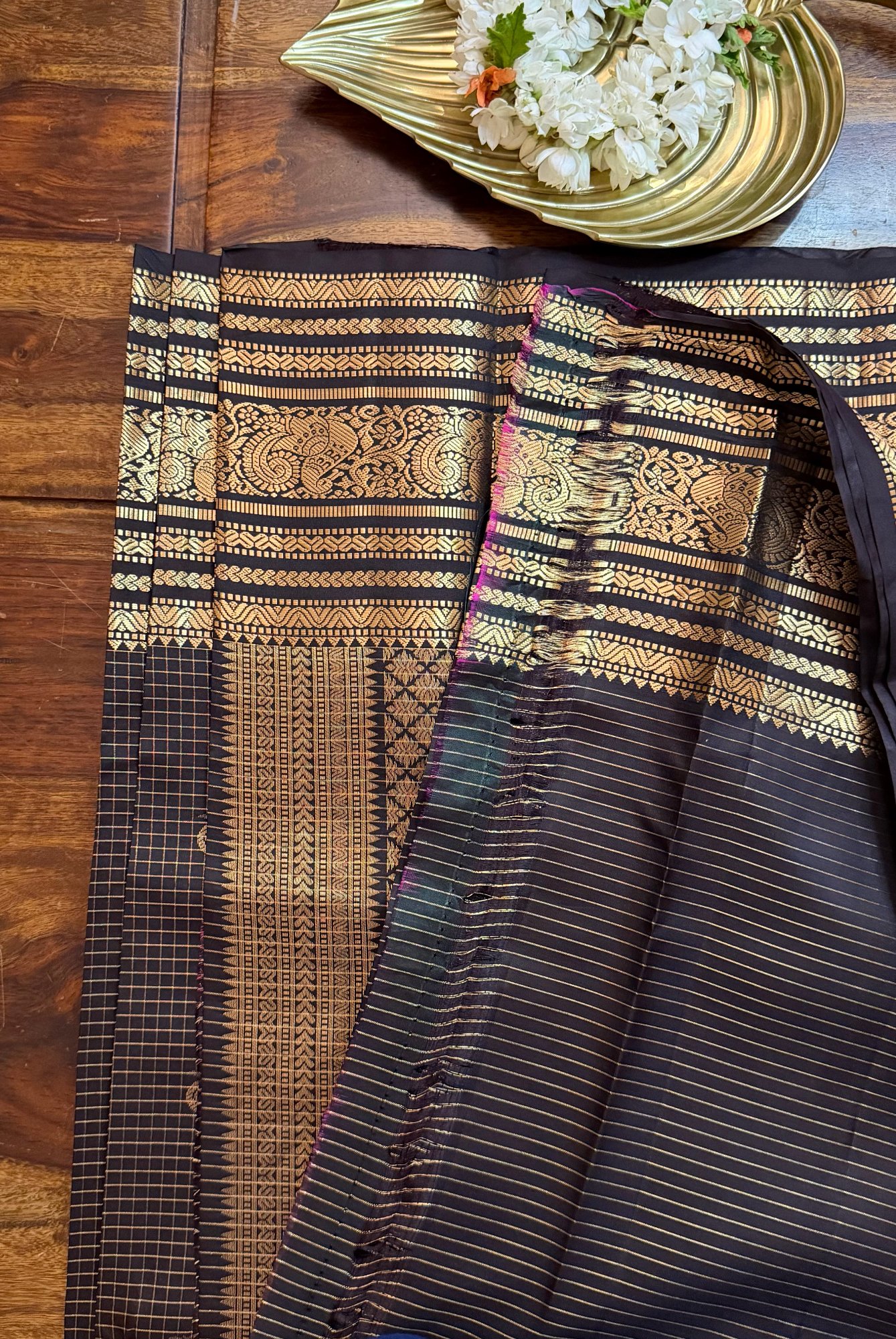 Pure Kanchipuram Silk Saree in Classic Black with Grand Gold Zari Weaving