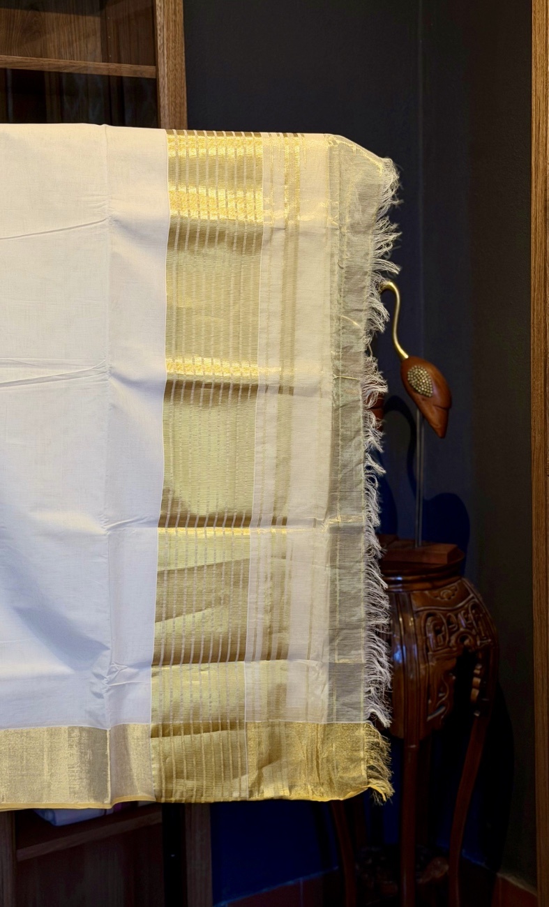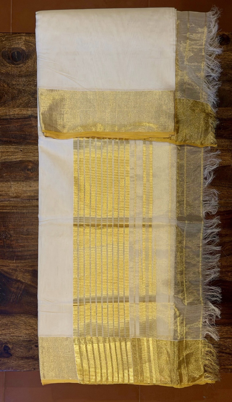 • Classic 4-inch Kasavu border for timeless Kerala styling