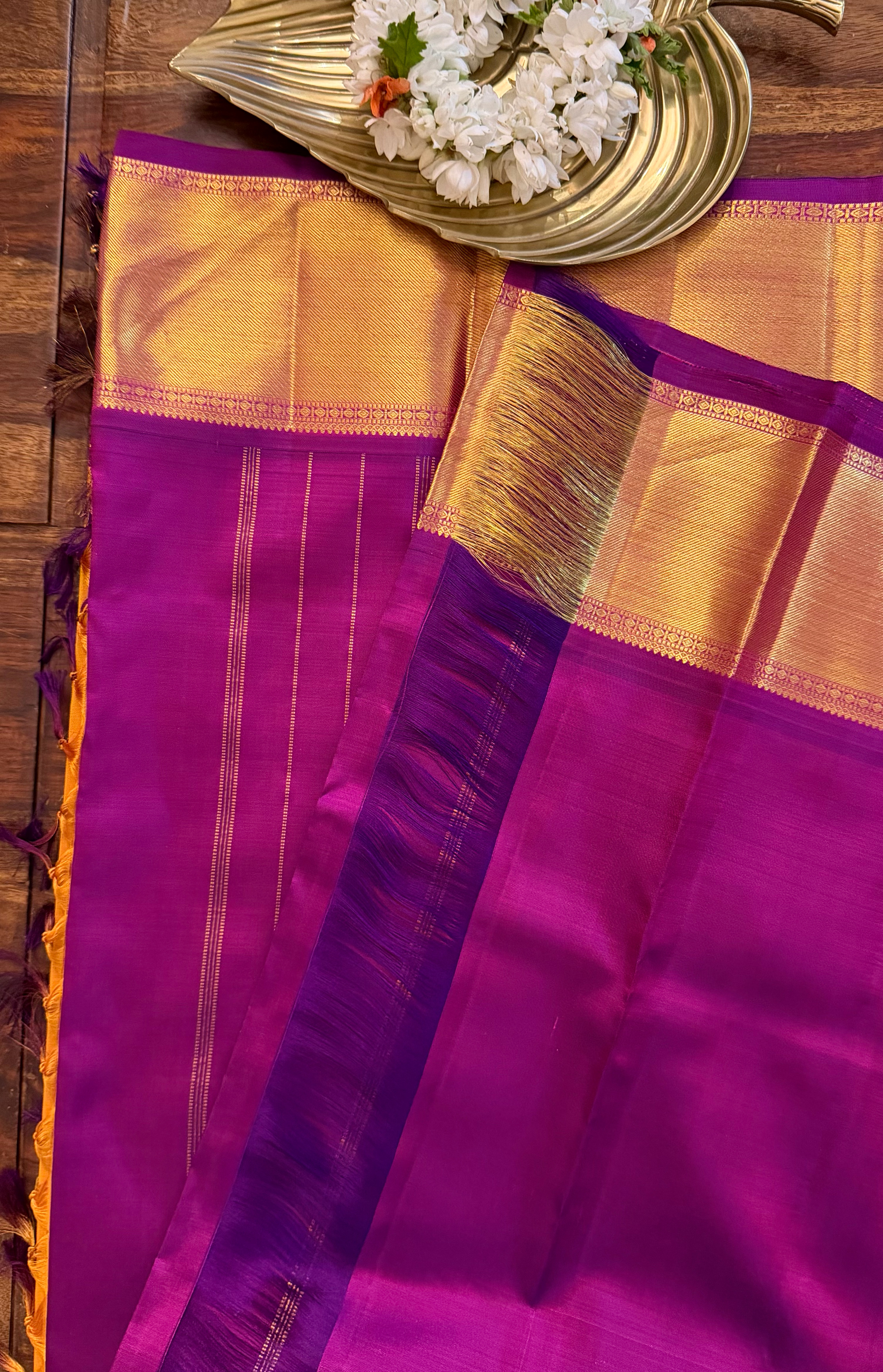 * Pallu: Rich Purple Pallu with Gold Zari Weaving