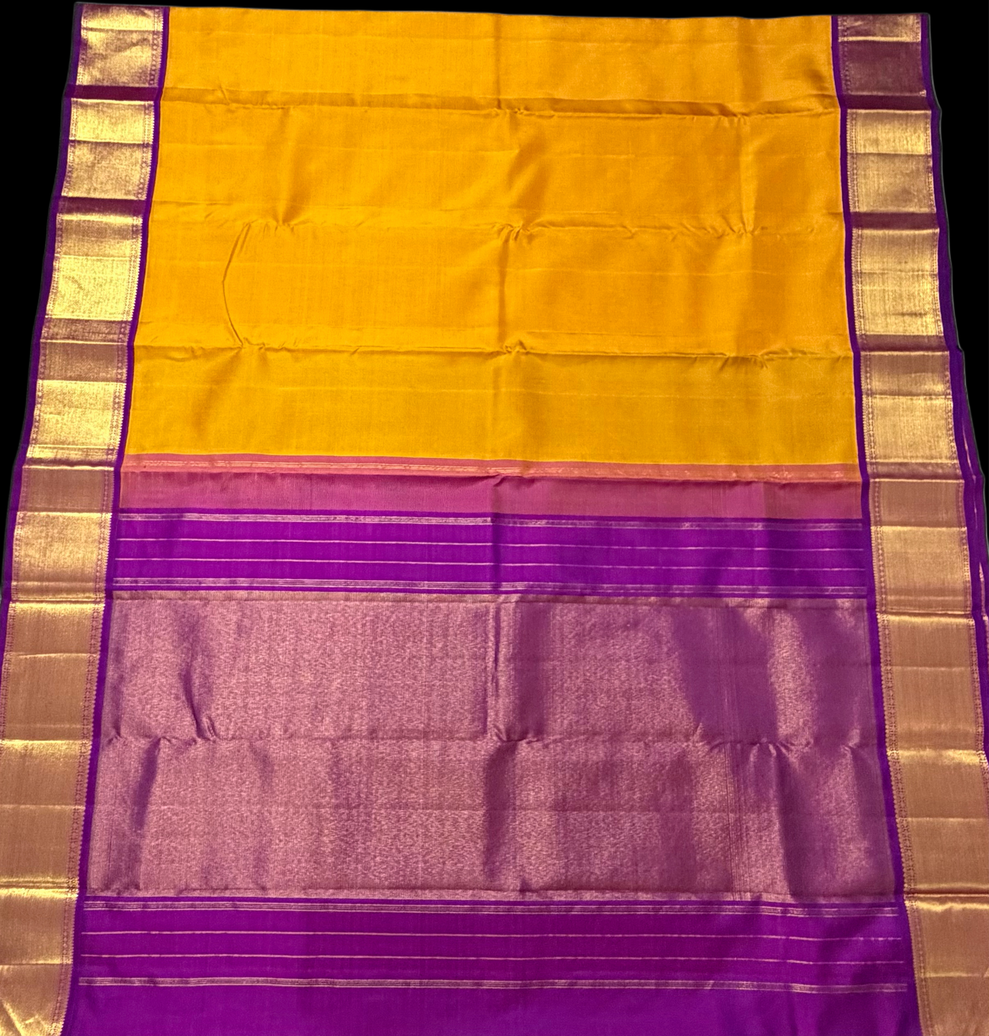 Pure Kanchipuram Silk Saree in Mustard Yellow with Royal Purple Border