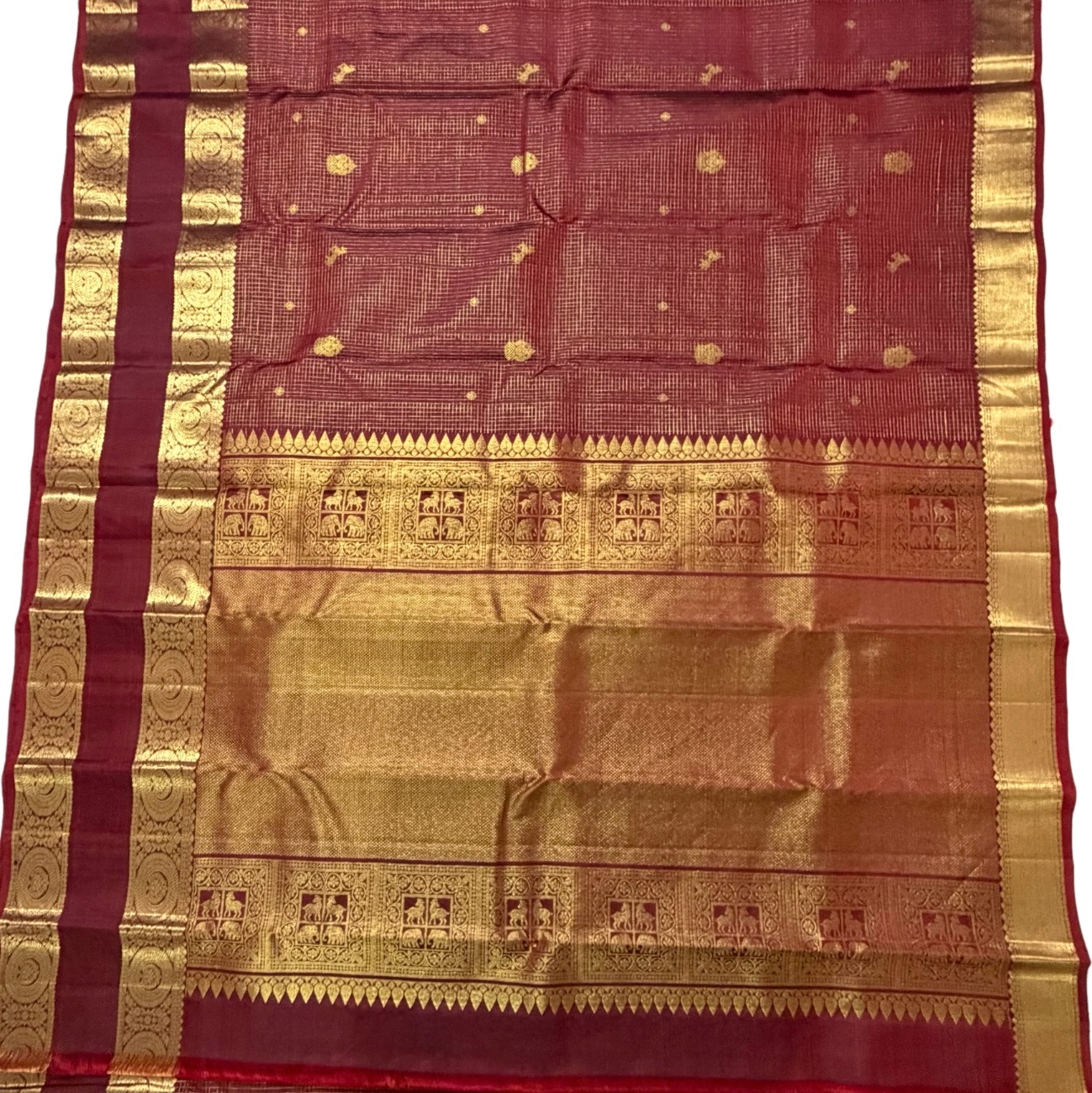 * Body Design: Gandaberunda, Flower & Kanthaka ( Royal Horse) Zari Buttas with Subtle Grid Pattern